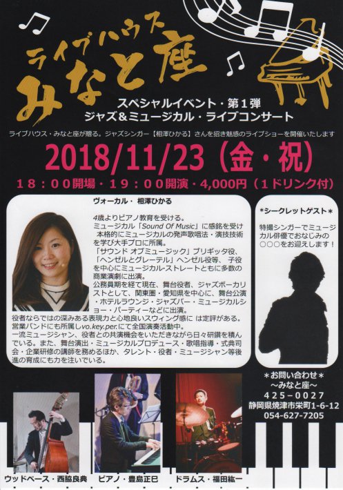 ■会場:ジャズハウス「みなと座」焼津市栄町1−6−12(焼津駅南口より徒歩3分)